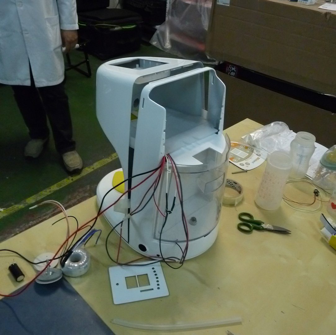 Desarrollado en coordinación con un equipo de electrónicos, se generó un innovador preparador de biberones doméstico para ser usado de forma práctica en las cocinas de los hogares.
